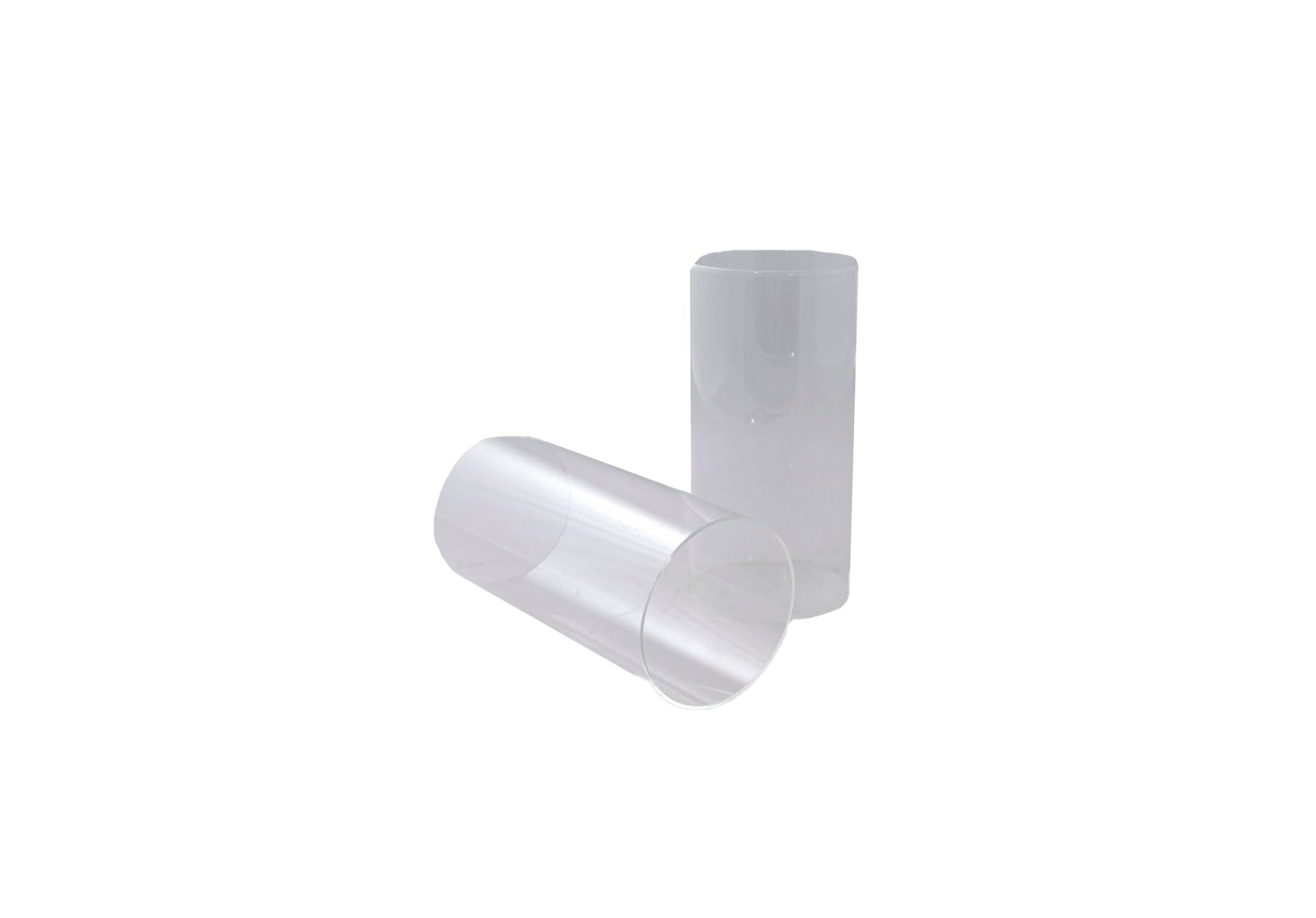 Tubo in vetro trasparente dalle dimensioni 100 mm di diametro e 200 mm di altezza, pensato come ricambio compatibile per la lanterna Hurricane modello RCLA01.